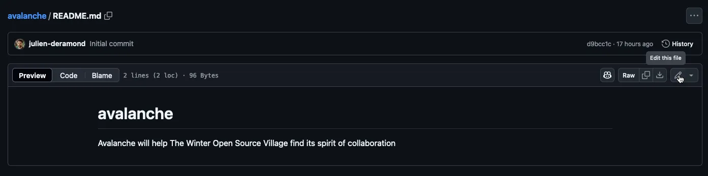 README.md # AvalancheAvalanche is a community-driven initiative designed to help The Winter Open Source Village rediscover its spirit of collaboration. As Open Source projects grow, they can sometimes lose the sense of unity that makes them thrive. Avalanche seeks to bring contributors back together, fostering a culture of teamwork and shared purpose. Whether you're a first-time participant or a seasoned contributor, Avalanche provides the tools and guidance to help everyone work in harmony.Through interactive challenges, mentorship, and open discussions, Avalanche creates an environment where contributors can connect, collaborate, and build exciting projects. It's not just about writing code; it's about building relationships and strengthening the bonds that make Open Source vibrant. Join Avalanche to help The Winter Open Source Village flourish as a beacon of collaboration and creativity.## LicenseThis project is licensed under the MIT License - see the [LICENSE](LICENSE) file for details.