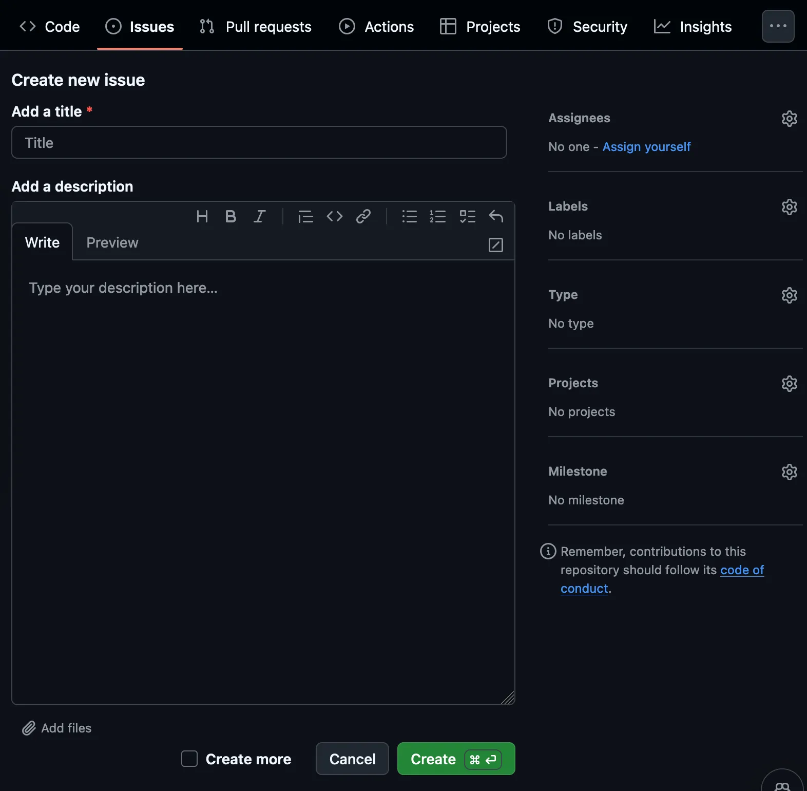 You can create additional templates for different types of issues, such as feature requests, documentation improvements, security issues, and performance issues. That’s up to you!
